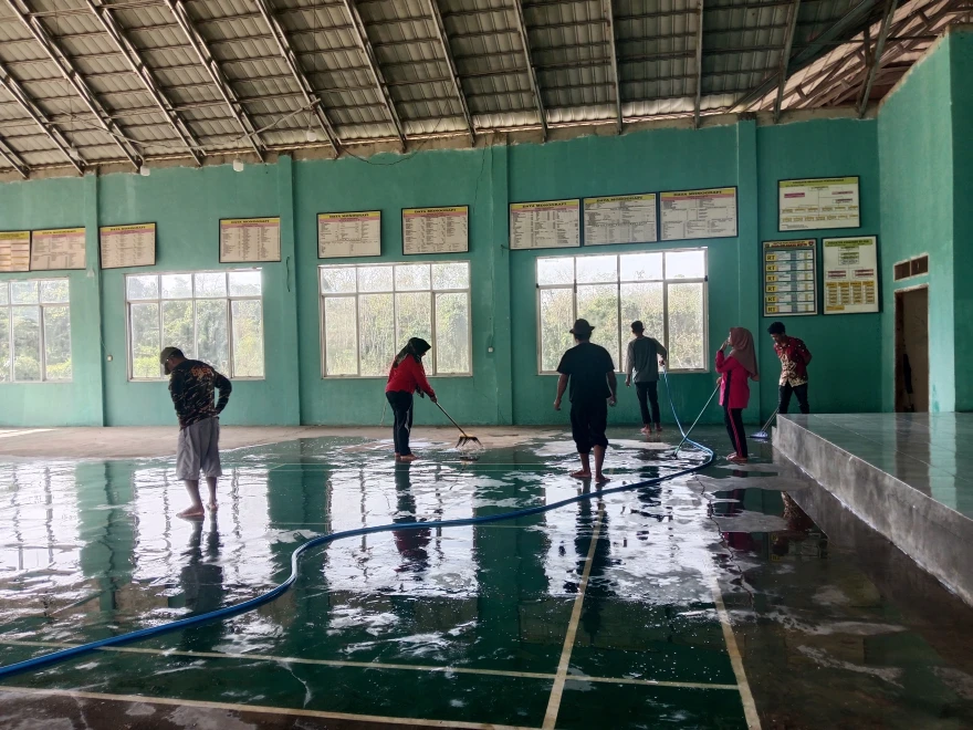 Kegiatan jumat bersih oleh aparatur desa dan masyarakat Desa Adi Karya Mulya. Kebersihan lingkungan adalah tanggung jawab kita bersama.